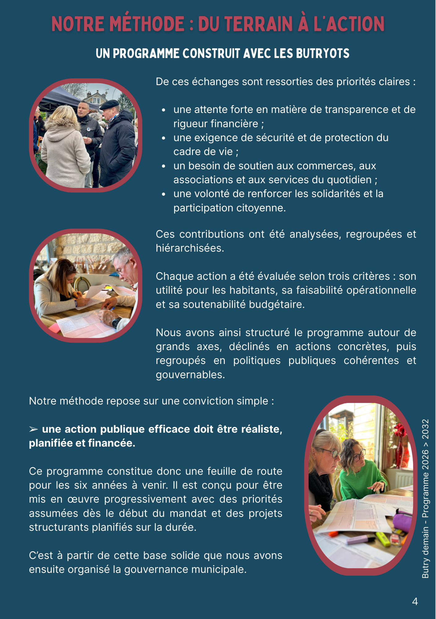 celle de co-construire le projet communal avec les butryots, à travers des ateliers collaboratifs, des rencontres citoyennes et une écoute active.